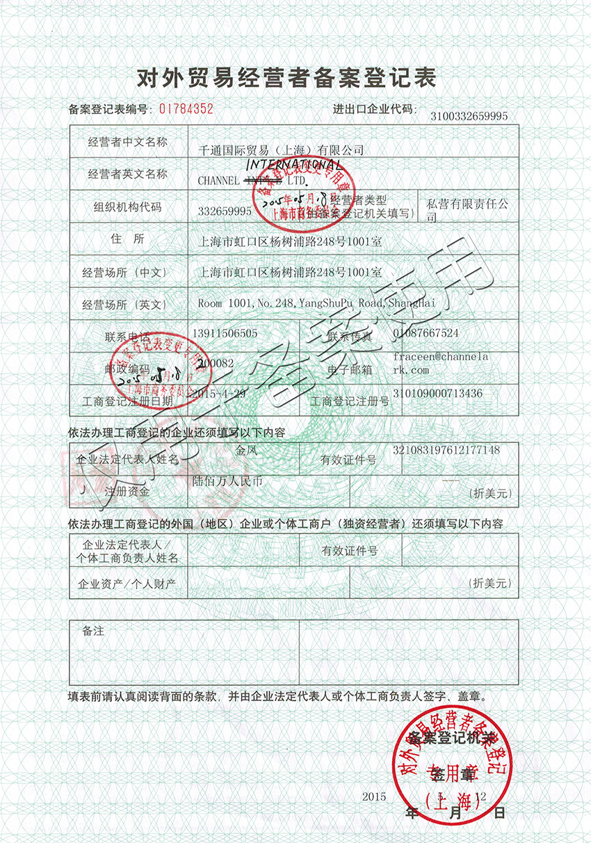 對外貿易經營者備案登記表